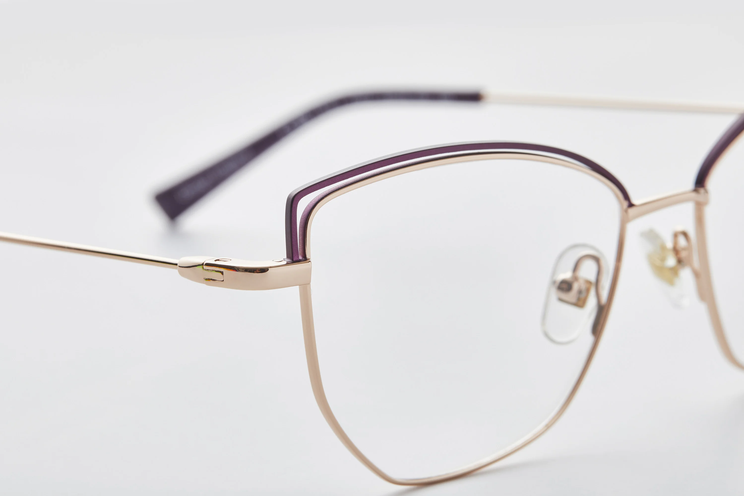Gradient colour rim on strong metal in a more angled and fashion inspired shape